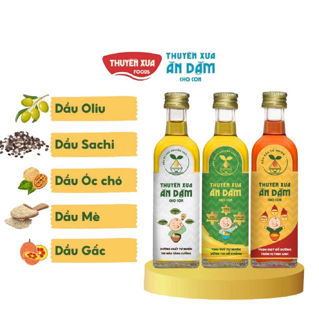 Dầu Ăn Dặm Cho Bé Thuyền Xưa Nguyên Liệu 100% Hạt Tự Nhiên (Oliu, Óc Chó, Gấc, Sachi, Mè) Chai 65ml/250ml
