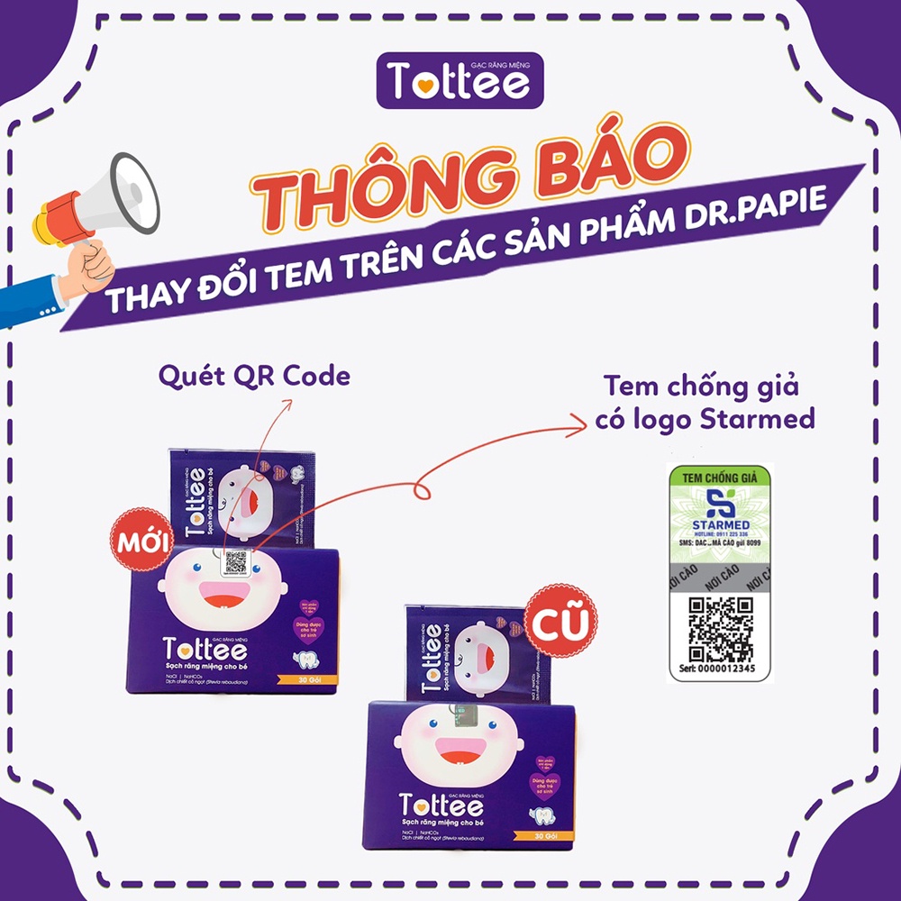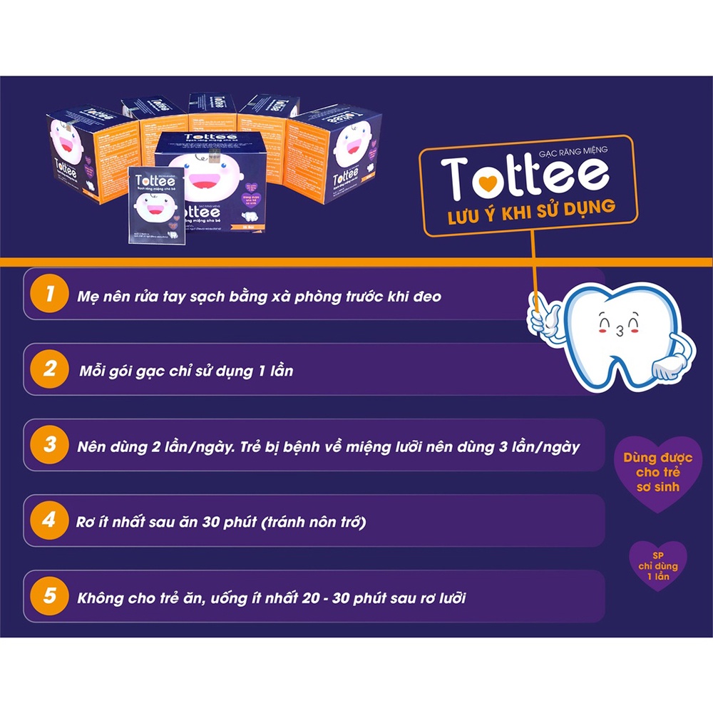 Gạc Rơ Lưỡi Tottee Làm Sạch Và Ngăn Ngừa Các Vấn Đề Răng Miệng Cho Bé Hộp 30 Gói