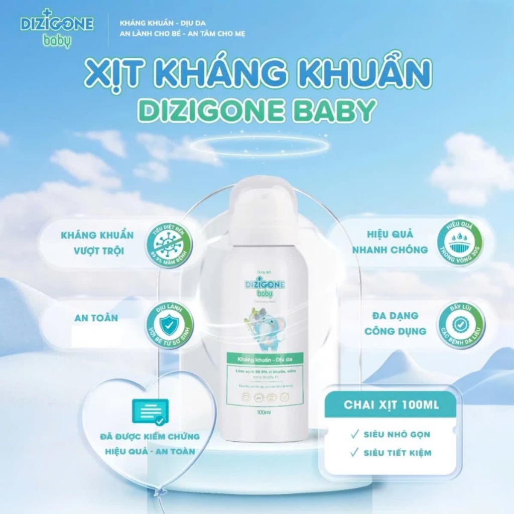 - Để kháng khuẩn phòng bệnh: Xịt trực tiếp Dizigone baby lên tay chân, cơ thể, đồ chơi, đồ dùng hay các bề mặt cần vệ sinh, làm sạch.